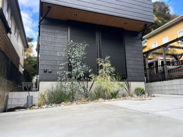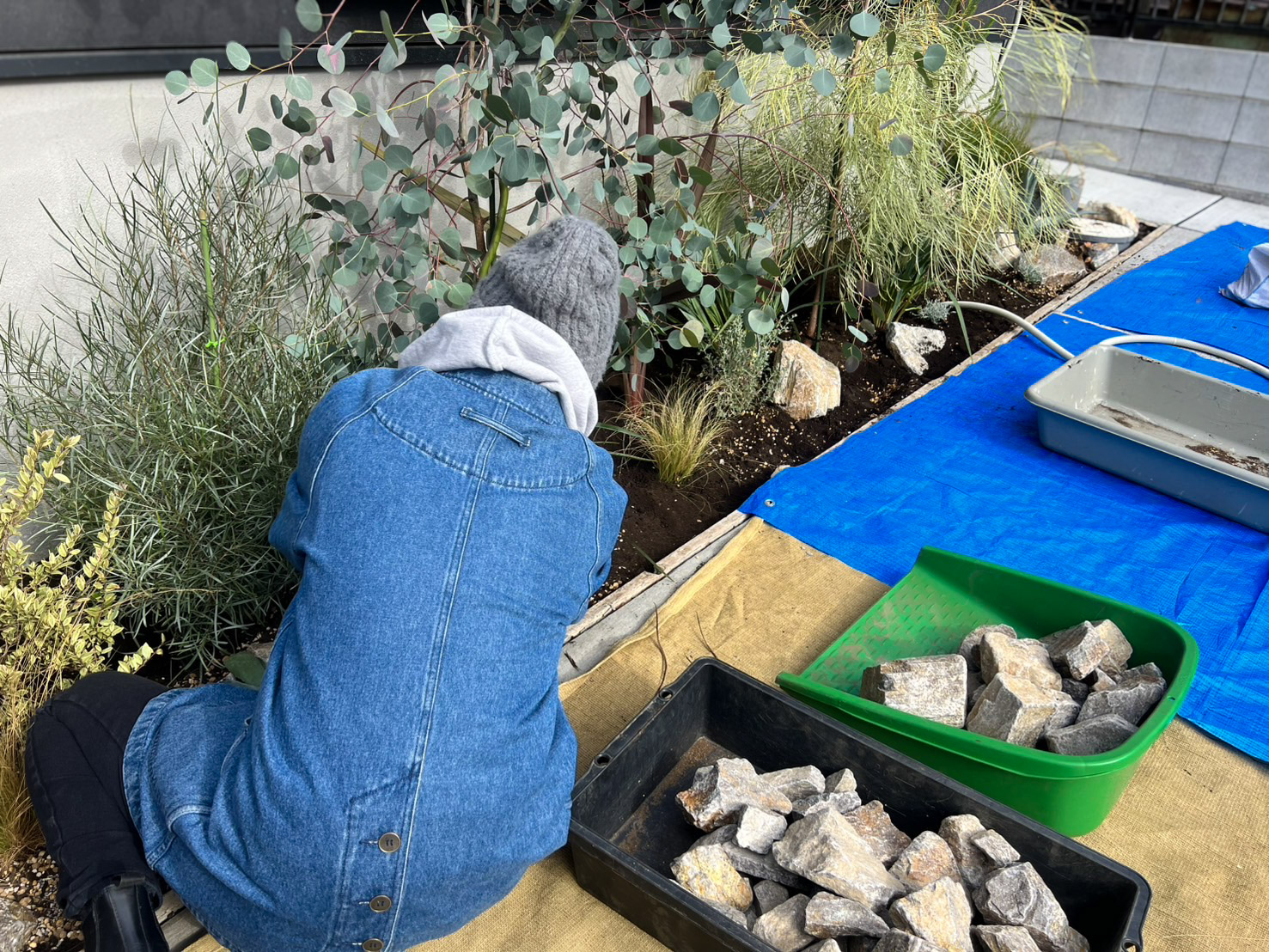 | CONCEPT | オーストラリアンプランツを軸に、 建物と風景に馴染むナチュラルドライガーデン。 ユーカリ、グレビレア、バンクシアなど、 自然な樹形と柔らかな葉色をもつ植物を中心に構成した、ナチュラルテイストのドライガーデン。 無機質になりすぎず、 それでいて甘くならない絶妙なバランスで、 鎌倉の落ち着いた住宅街に溶け込む植栽デザインを目指しました。 |